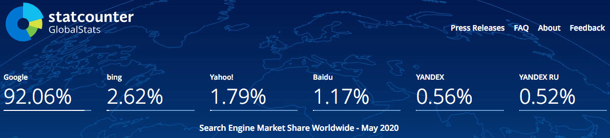 Sure, you can make time to optimize SEO for every search engine, but the reality is that Google own's 92% of the world's global market share in search engine traffic. Similarly, Google boasts 88% of the US market share alone.