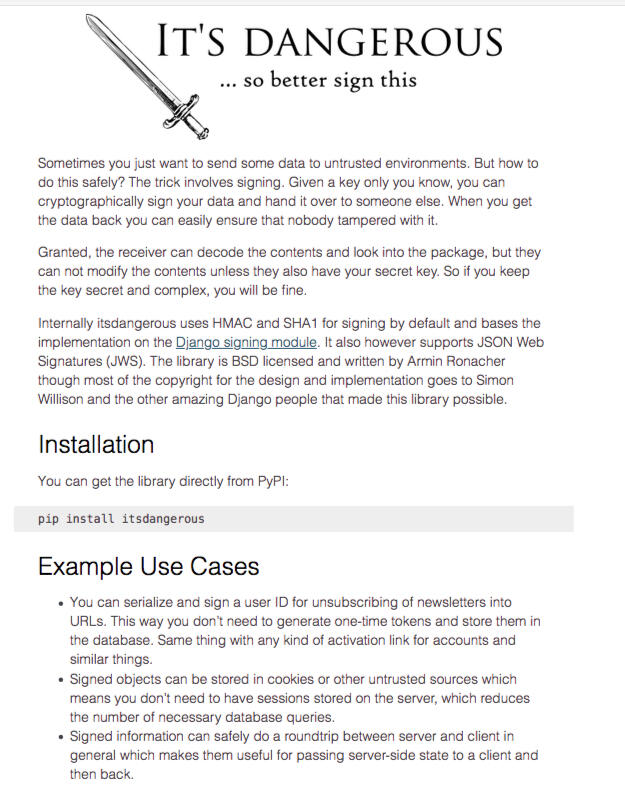 pip install -U itsdangerousAs I utilized in my project, Encourage, itsdangerous is a python library that supplies a url serializer.In cases where user information could be easily spoofed, technology like the url serializer offers hashed tokens that substitute for UID's.As in my project, Encourage, in instances where the UID could be guessable, itsdangerous loads the advocate's UID in one route, then dumps an encrypted token in it's place.In my experience, the tech works flawlessly and will be utilized in my future projects.